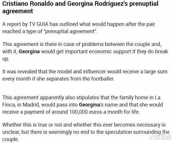 来自《马卡报》的音信:C罗与乔治娜果然有一份婚前合同!
